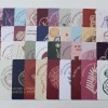 The cards are printed on 350 gram matte paper, not shrink-wrapped, and will be send in waste paper in the spirit of environmental awareness. Cards are 9cm by 12.7cm. Now with free card-holder!