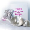 Just like the silverettes, silver caps can be used on your nipples. They are made of pure silver. The shape makes them comfortable to wear. By wearing the silver, the nipple is supported and protected. The healing effect of breast milk and the anti-bacterial effect of silver together ensure a healthy climate. The use of the silver caps is safe for the baby and the mother. They heal cracked nipples and thrush within a short time.